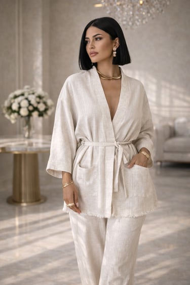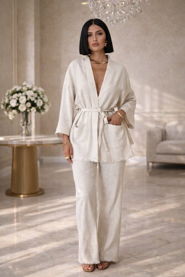 A refined tailored set designed for effortless elegance and modern sophistication. A statement of quiet luxury and timeless confidence.